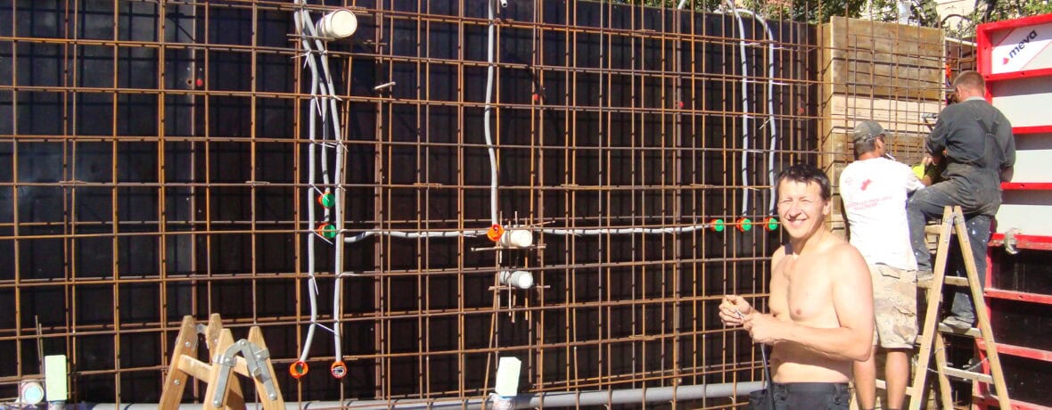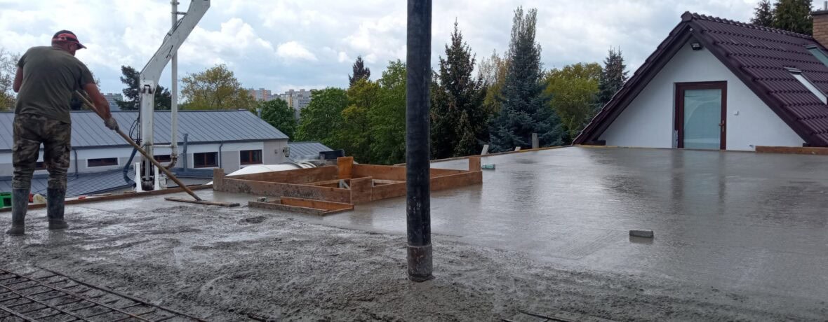 Specializujeme se na monolitické železobetonové konstrukce — stropy rodinných a menších bytových domů, opěrné zdi, ploty, suterény, bílé vany a základové desky.