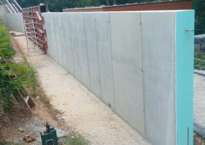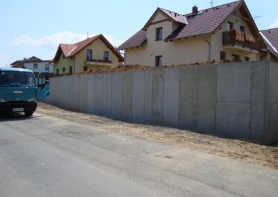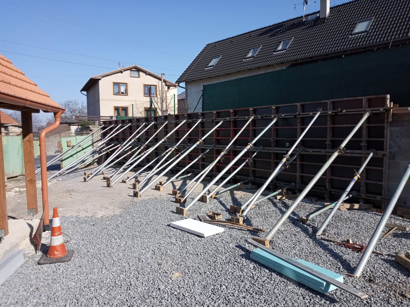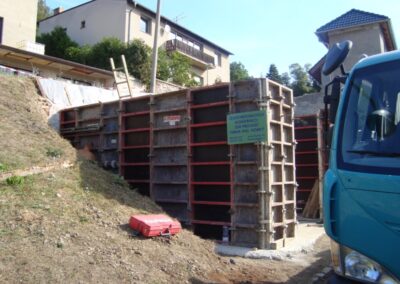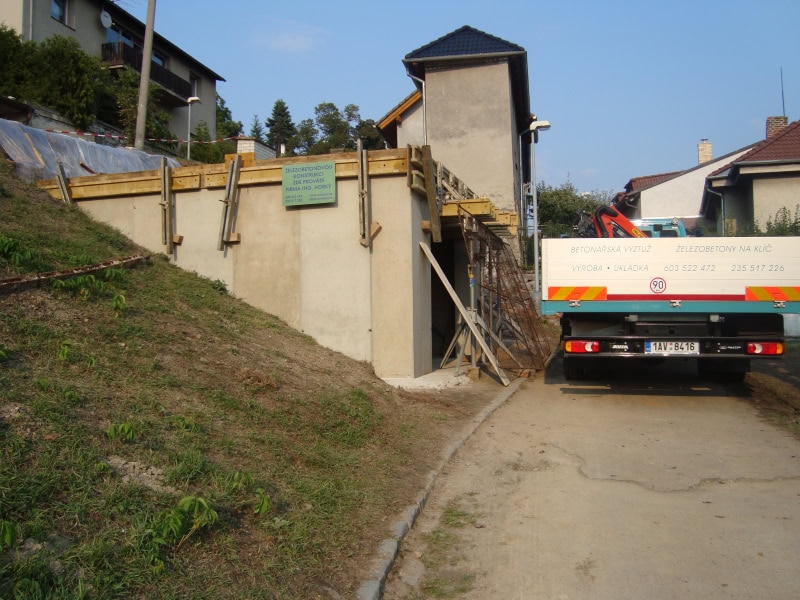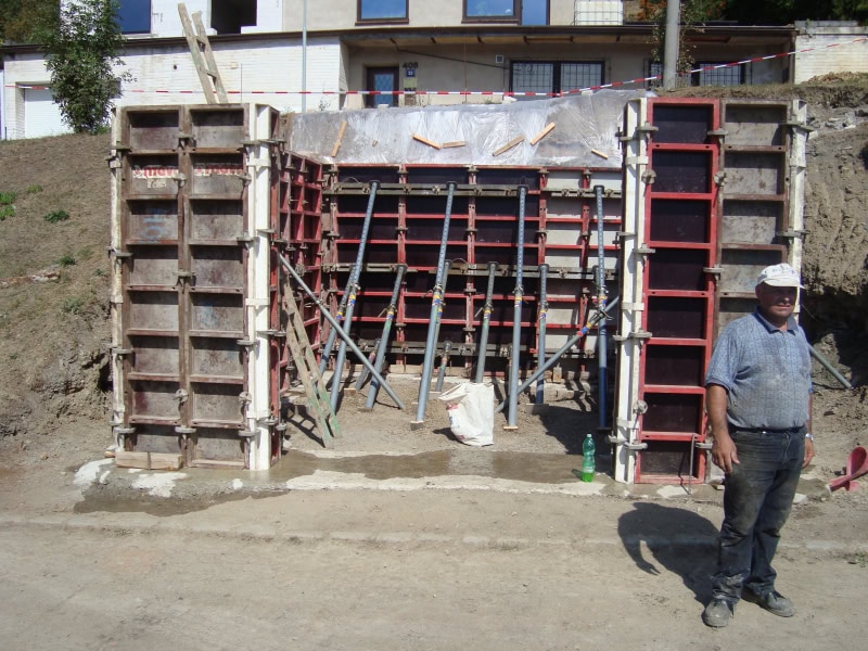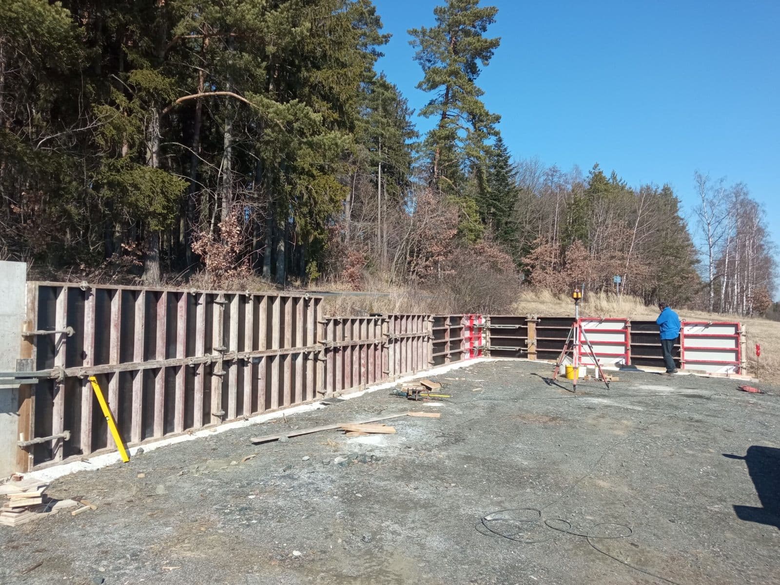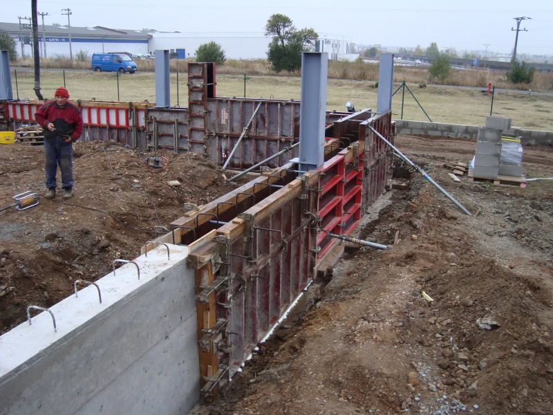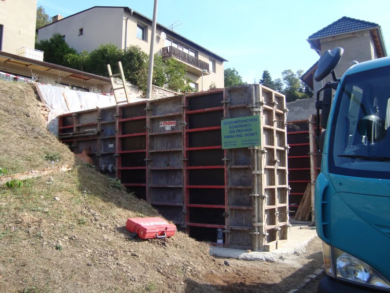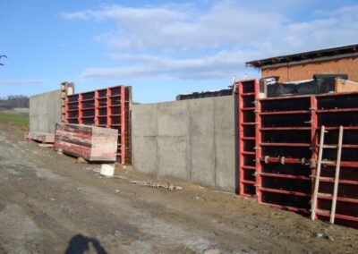 Realizujeme monolitické železobetonové opěrné zdi i jakékoliv další svislé konstrukce. Pro práci využíváme vlastní systémové stěnové bednění MEVA Startec, které máme dlouhodobě skladované, udržované a ošetřované v krytém prostoru. K dispozici máme přibližně 250 m² tohoto kvalitního bednění.