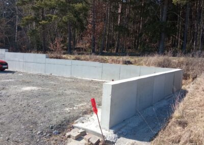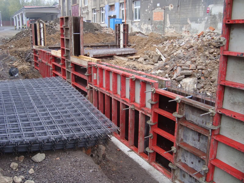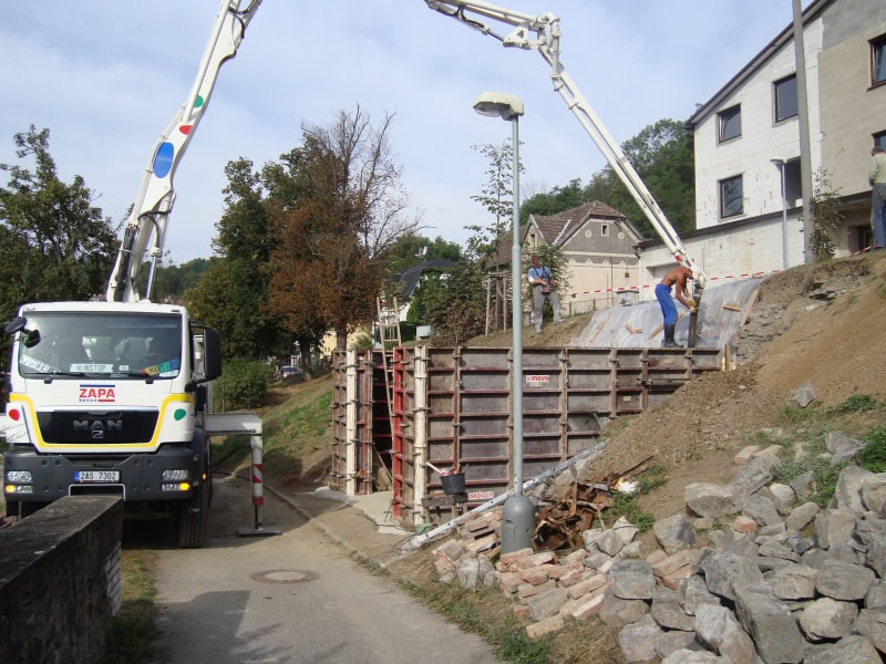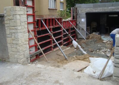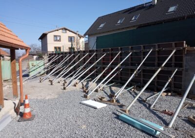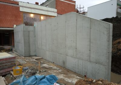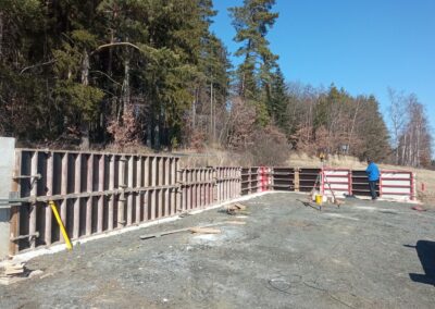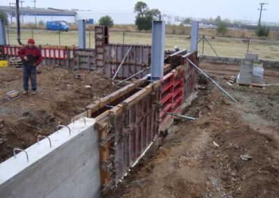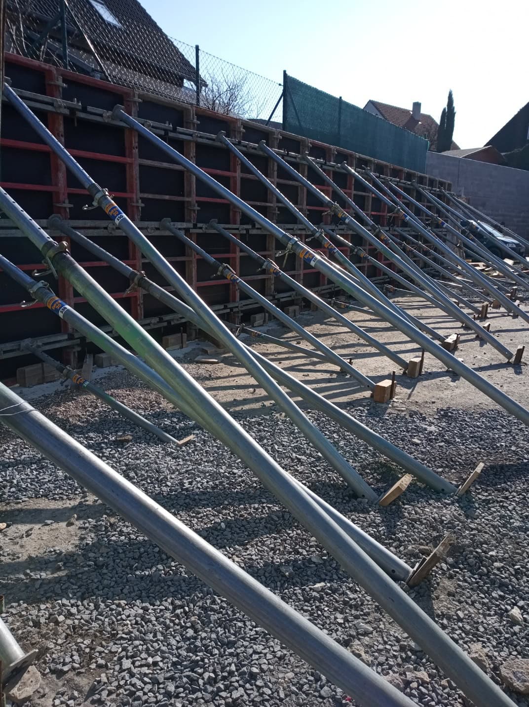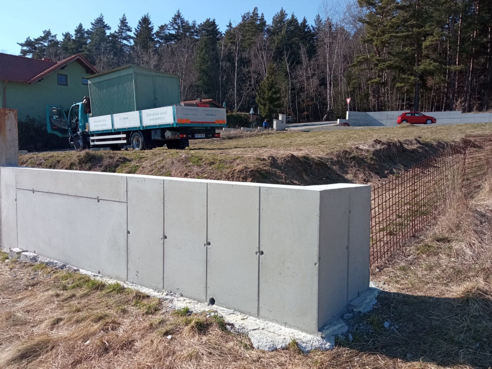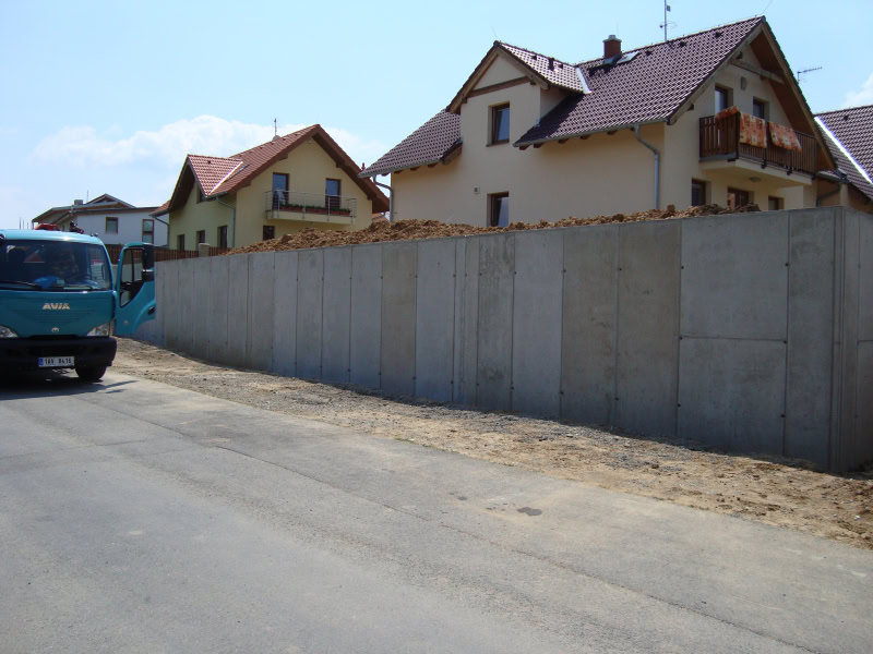 Realizujeme monolitické železobetonové opěrné zdi i jakékoliv další svislé konstrukce. Pro práci využíváme vlastní systémové stěnové bednění MEVA Startec, které máme dlouhodobě skladované, udržované a ošetřované v krytém prostoru. K dispozici máme přibližně 250 m² tohoto kvalitního bednění.