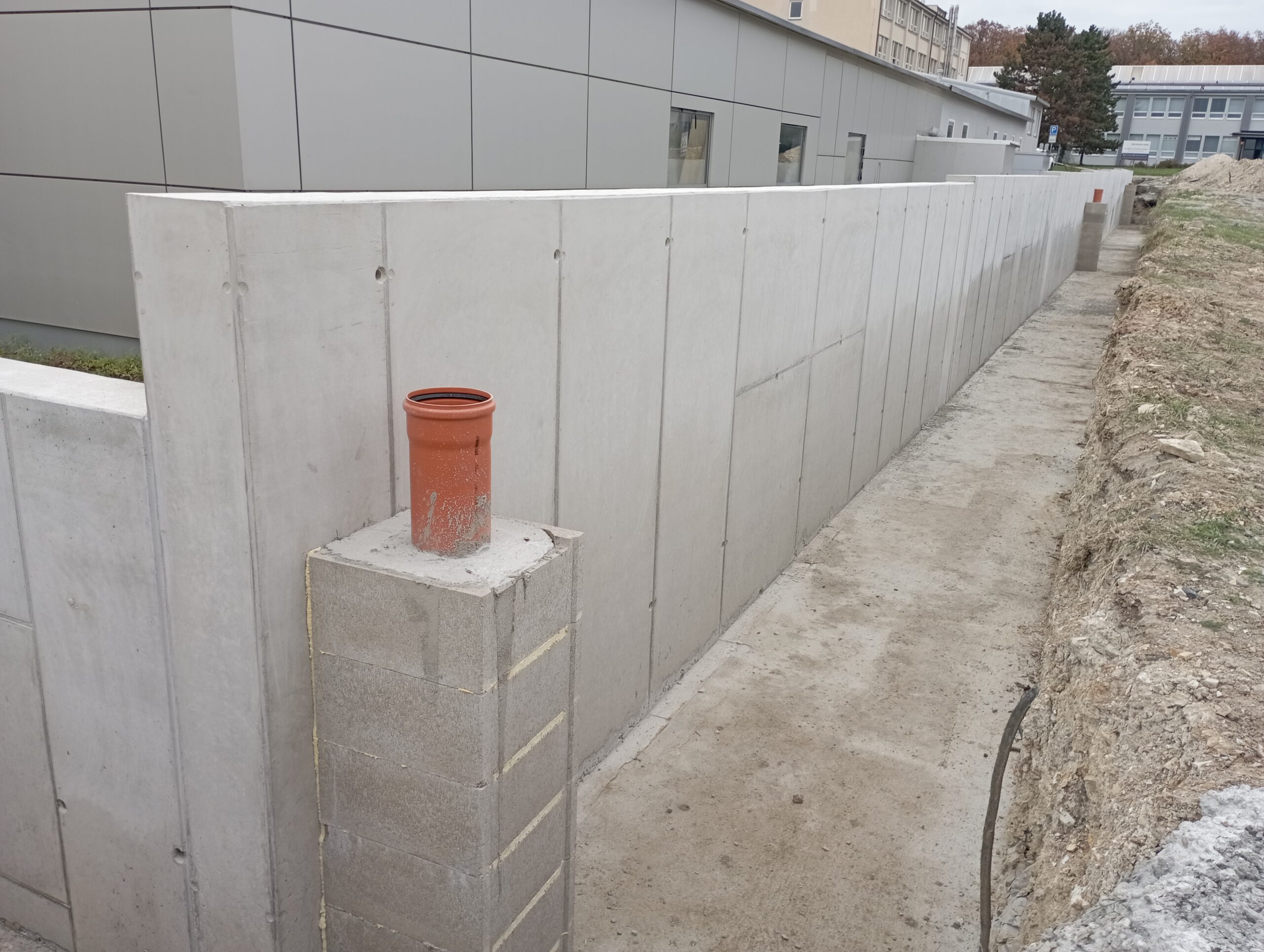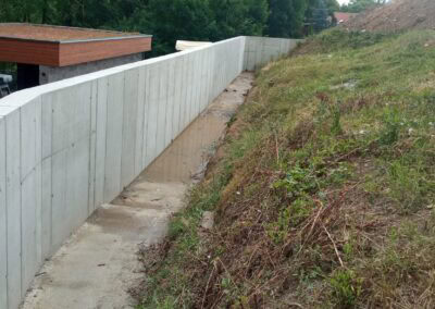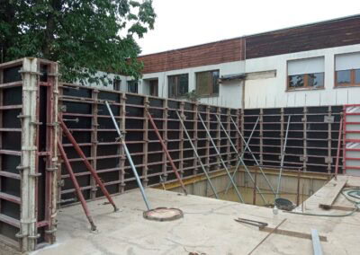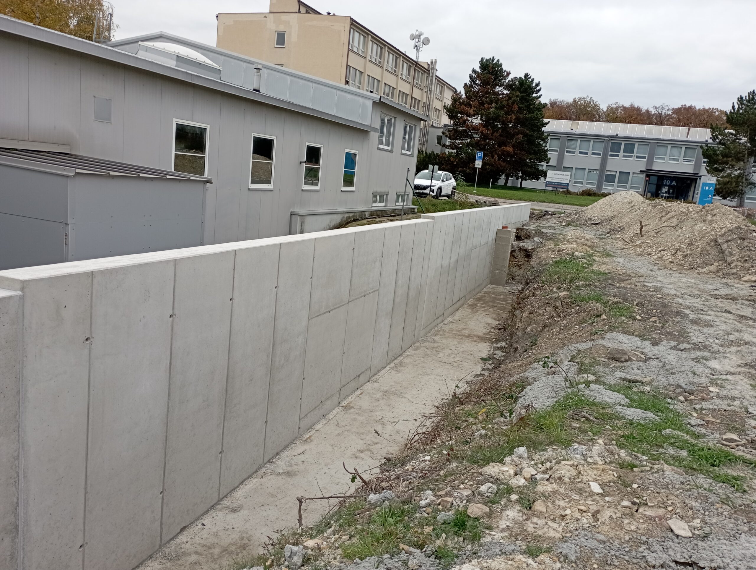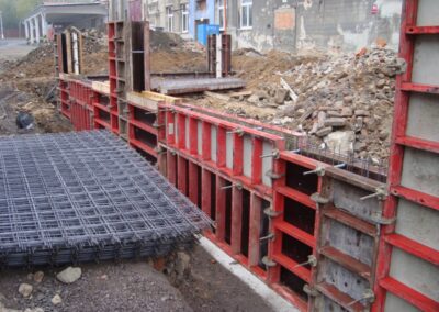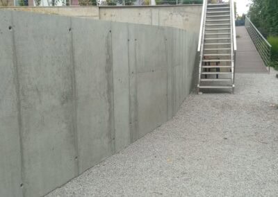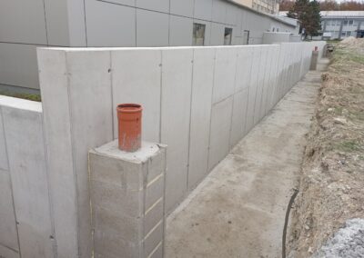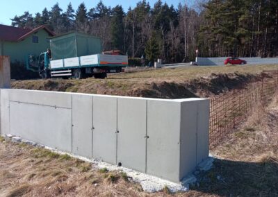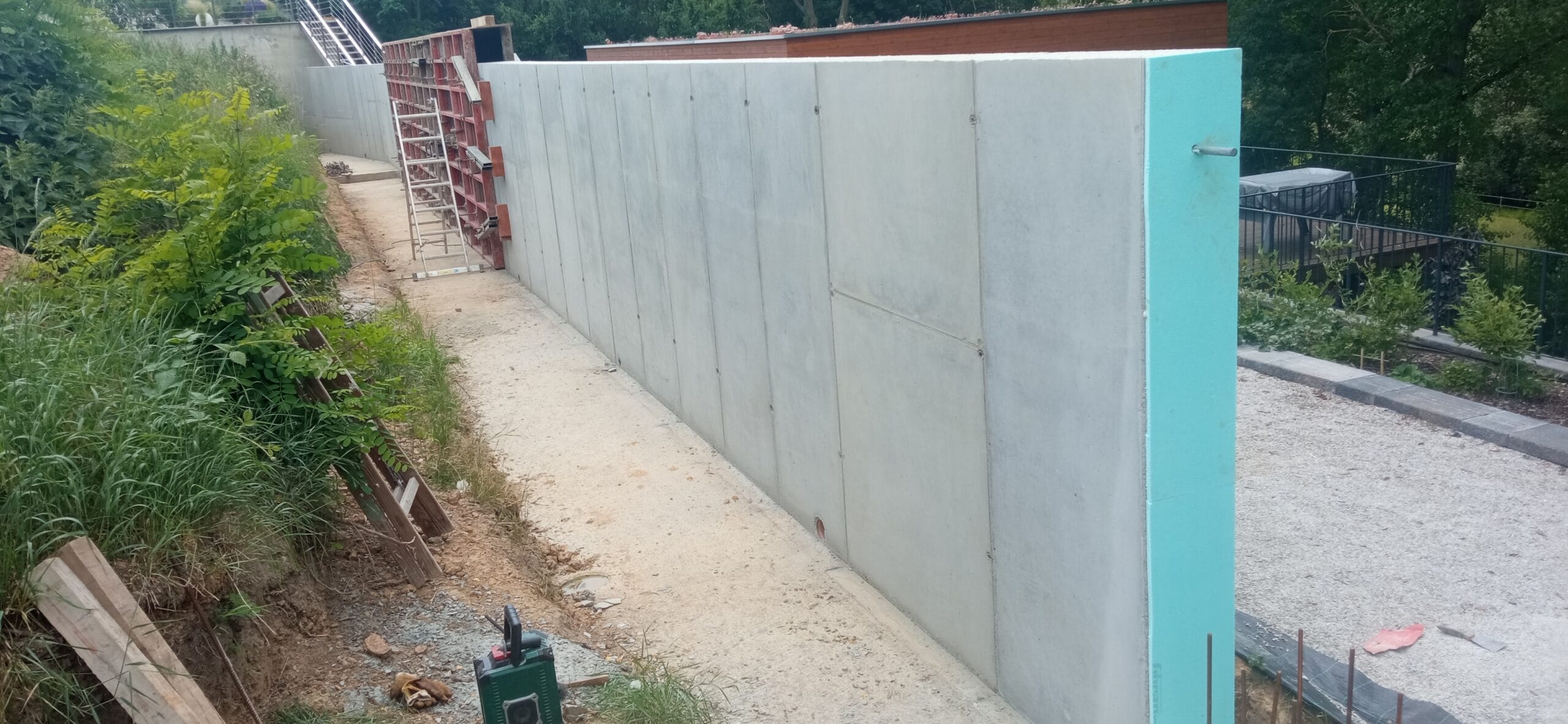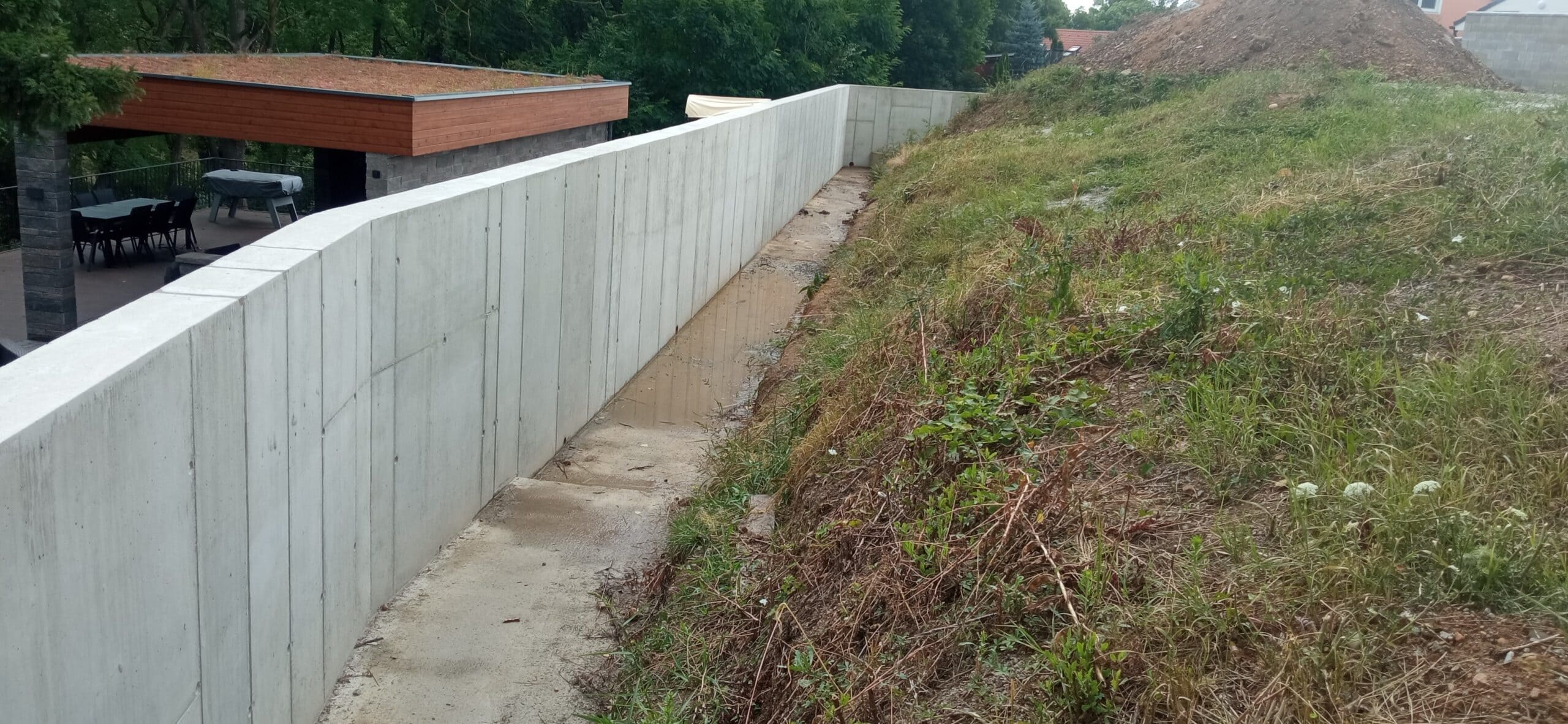 Realizujeme monolitické železobetonové opěrné zdi i jakékoliv další svislé konstrukce. Pro práci využíváme vlastní systémové stěnové bednění MEVA Startec, které máme dlouhodobě skladované, udržované a ošetřované v krytém prostoru. K dispozici máme přibližně 250 m² tohoto kvalitního bednění.