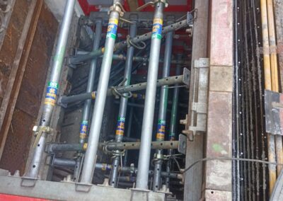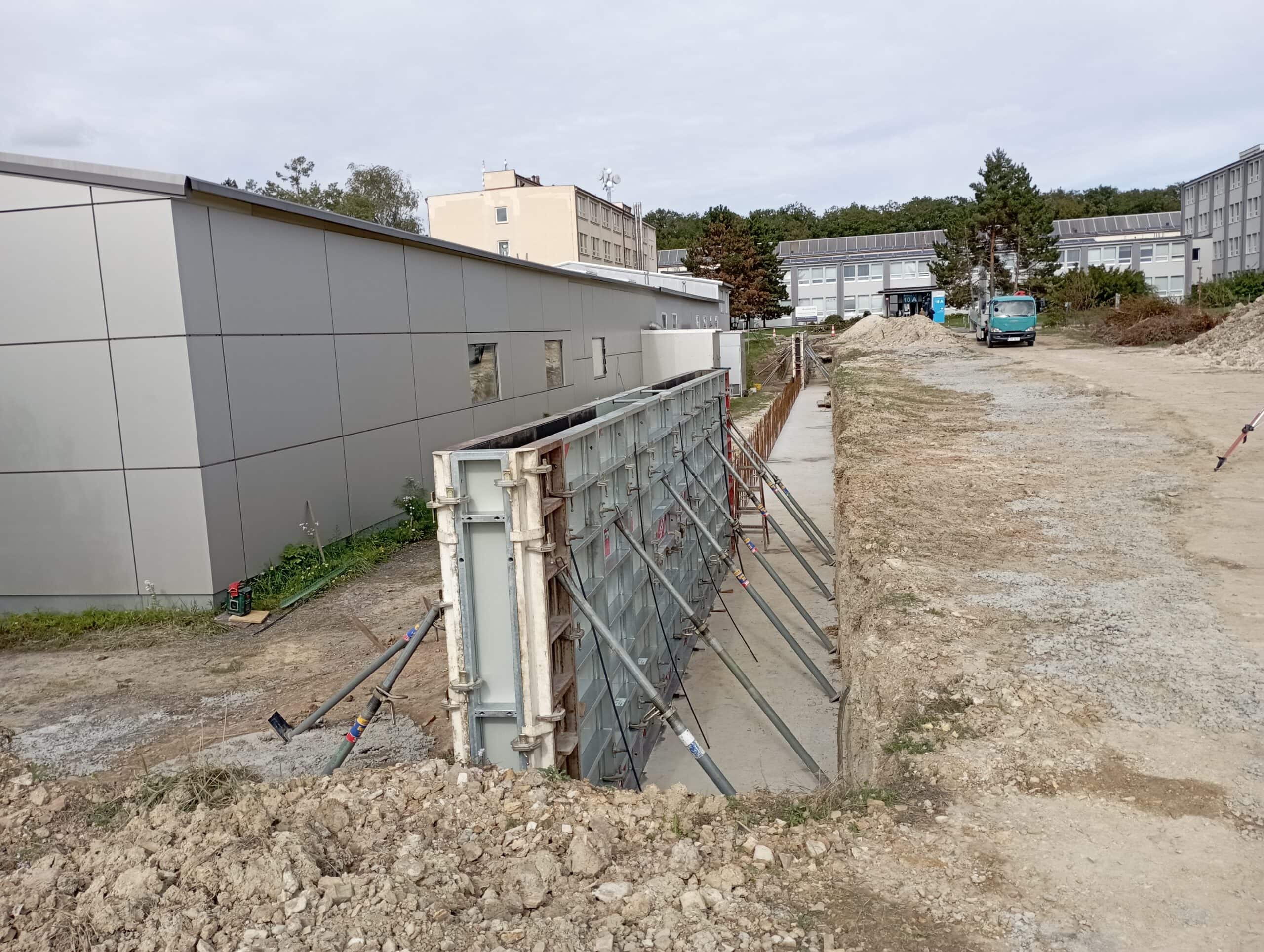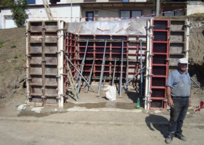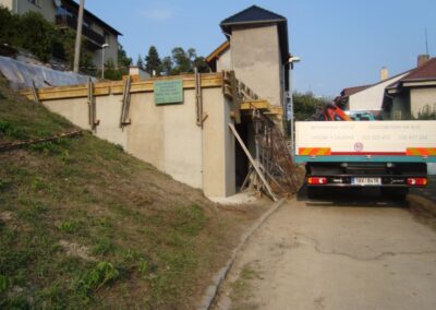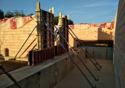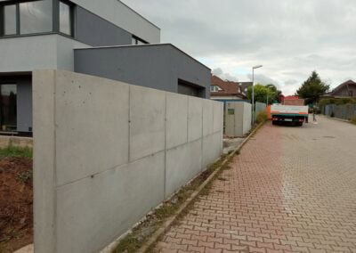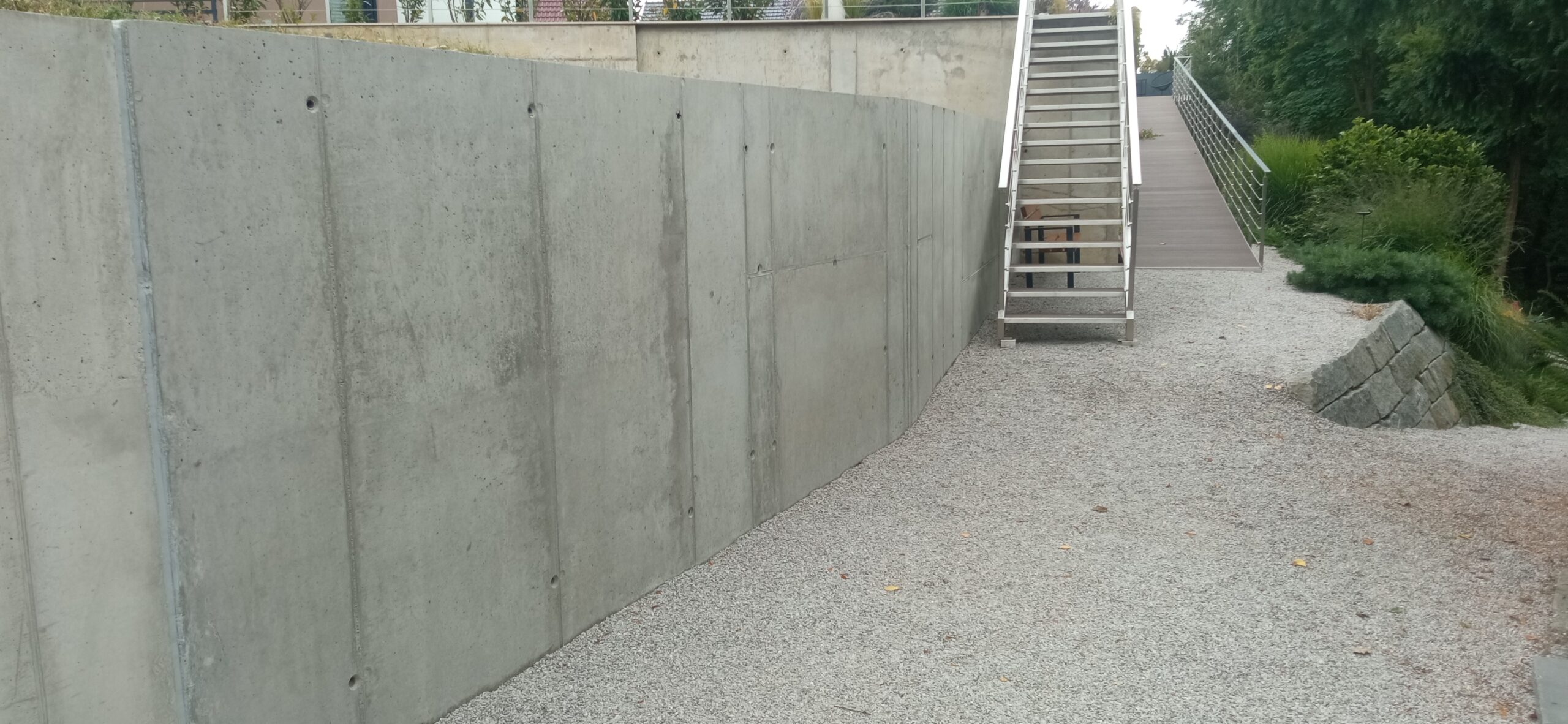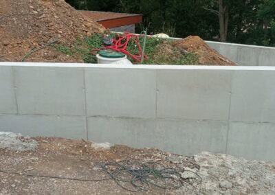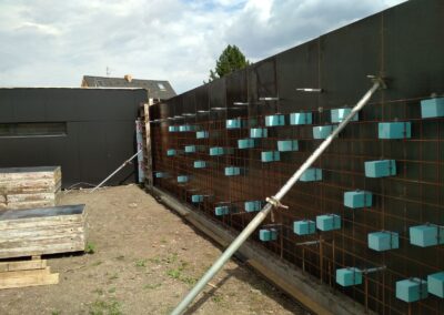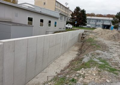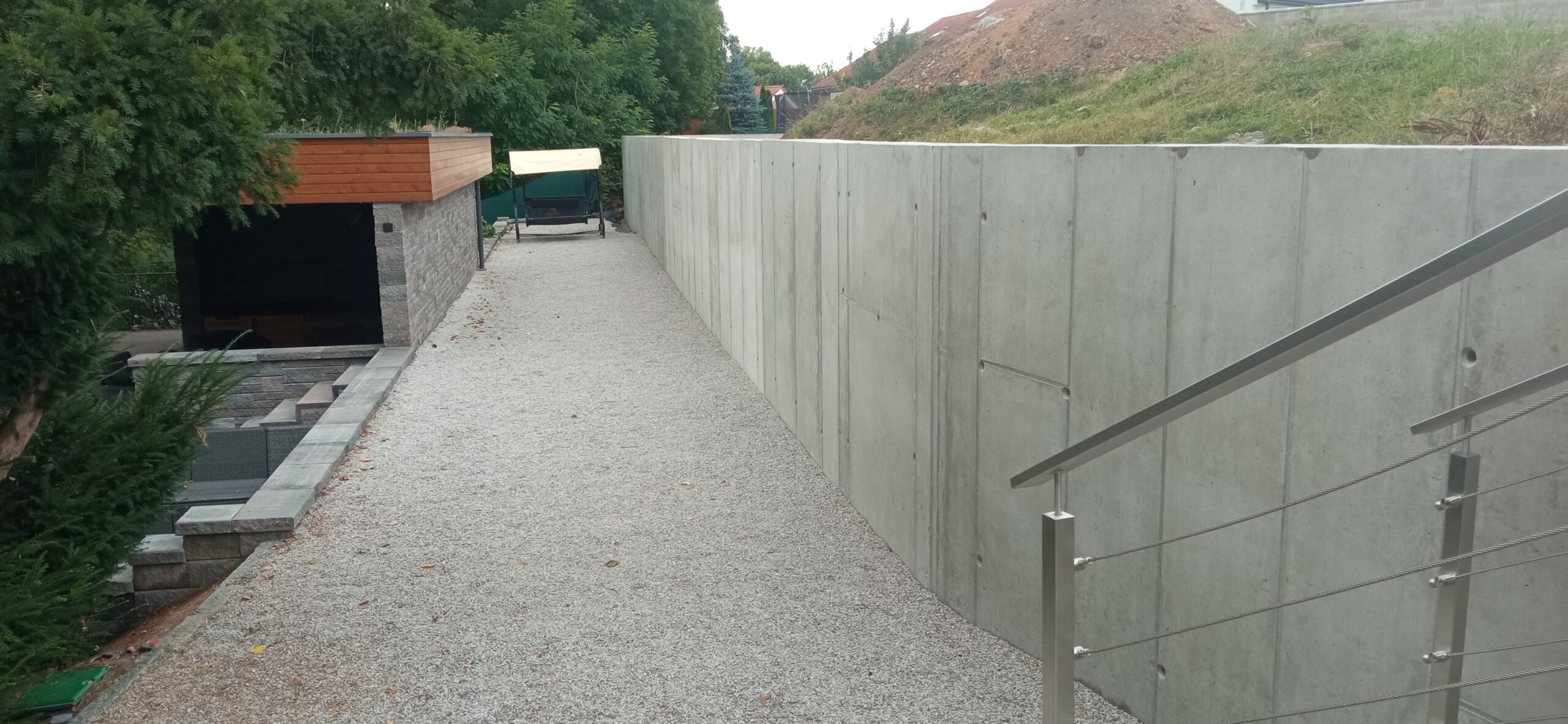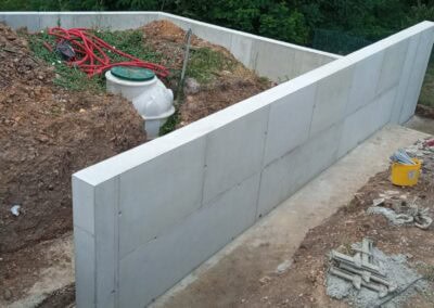 Realizujeme monolitické železobetonové opěrné zdi i jakékoliv další svislé konstrukce. Pro práci využíváme vlastní systémové stěnové bednění MEVA Startec, které máme dlouhodobě skladované, udržované a ošetřované v krytém prostoru. K dispozici máme přibližně 250 m² tohoto kvalitního bednění.