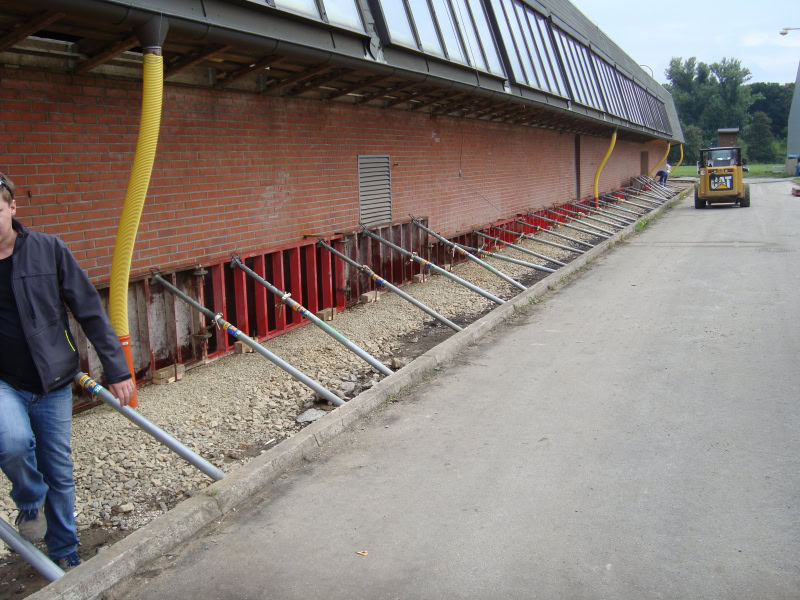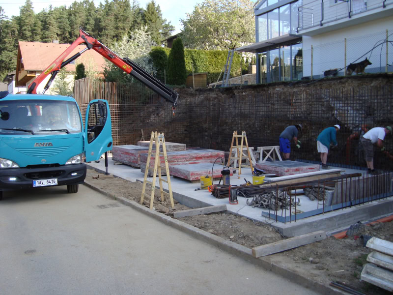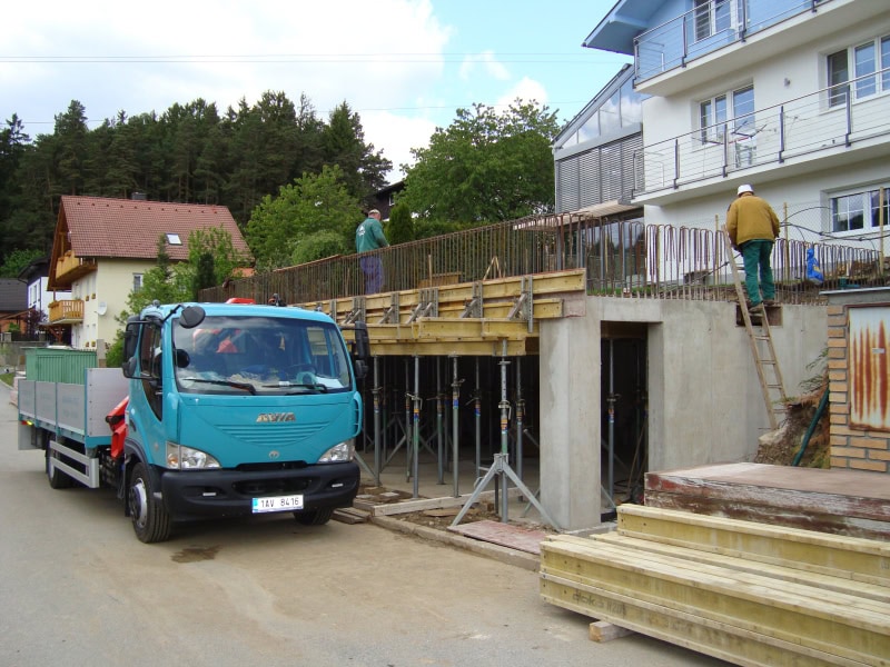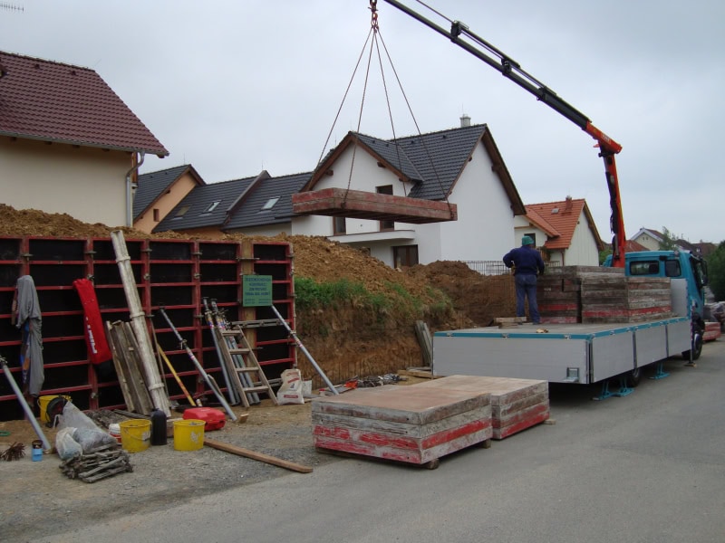 Při ukládání betonu je samozřejmostí důkladné hutnění pomocí ponorného vibrátoru, které zajišťuje správnou strukturu a pevnost výsledné konstrukce.