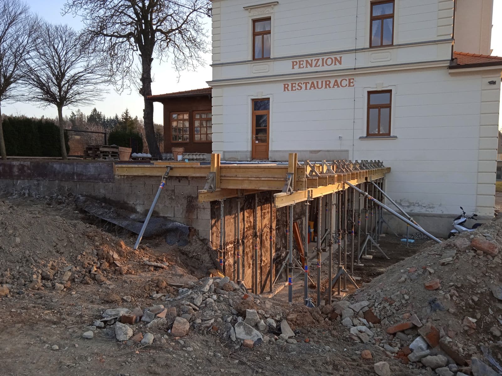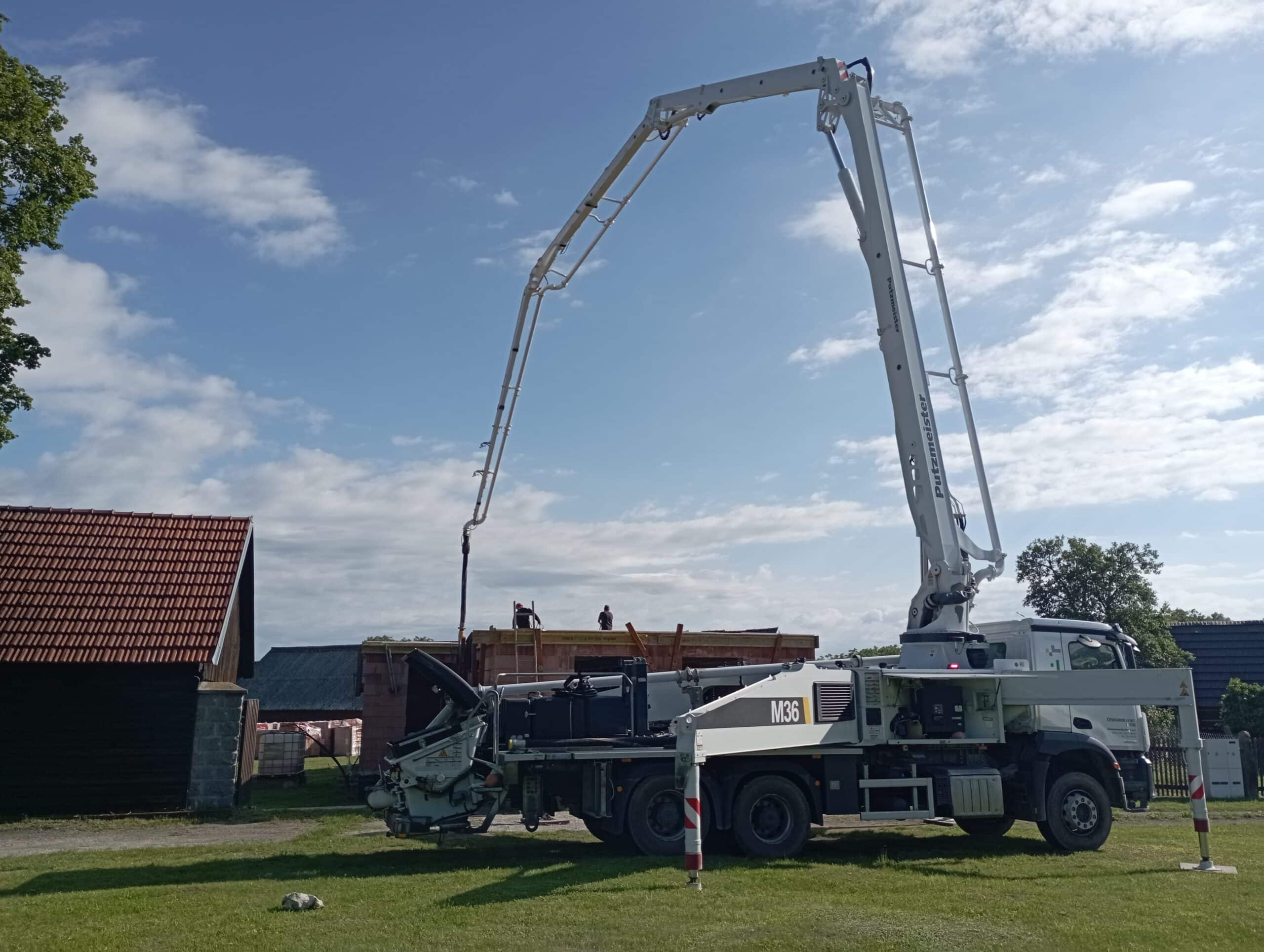 Bednění i betonářskou výztuž dopravujeme vlastním 12t nákladním vozidlem s hydraulickou rukou. Díky tomu je manipulace na stavbě rychlá a efektivní.